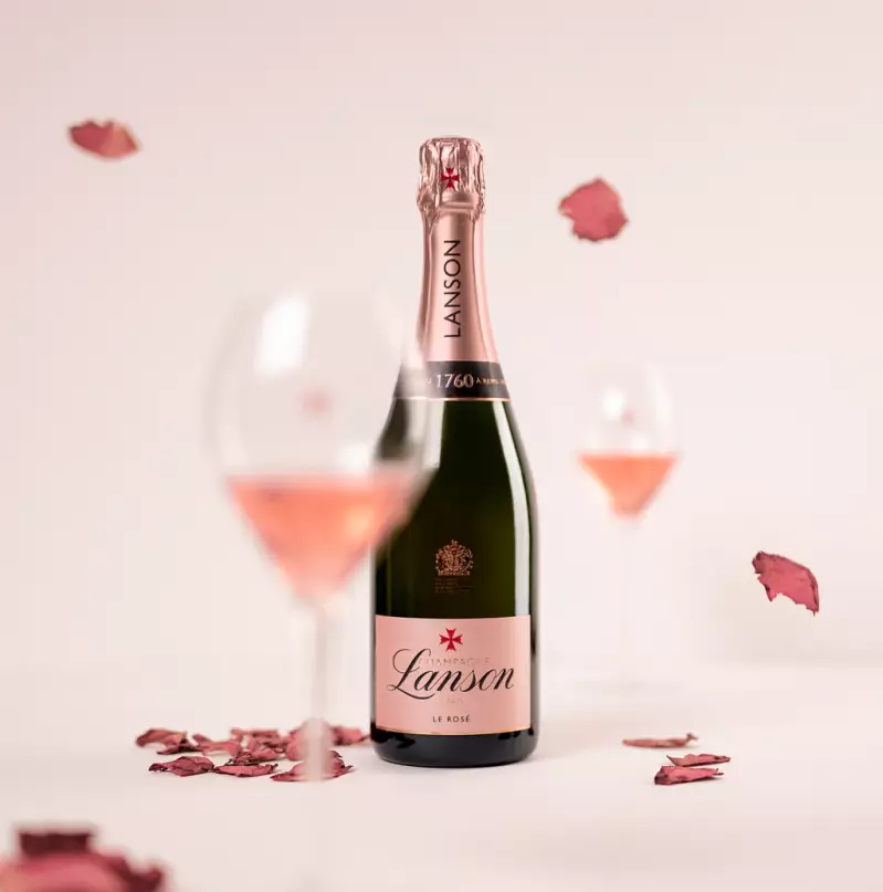 La marca elegida es Lanson, una de las casas pioneras en producir un rosado mezclado, desde 1833.